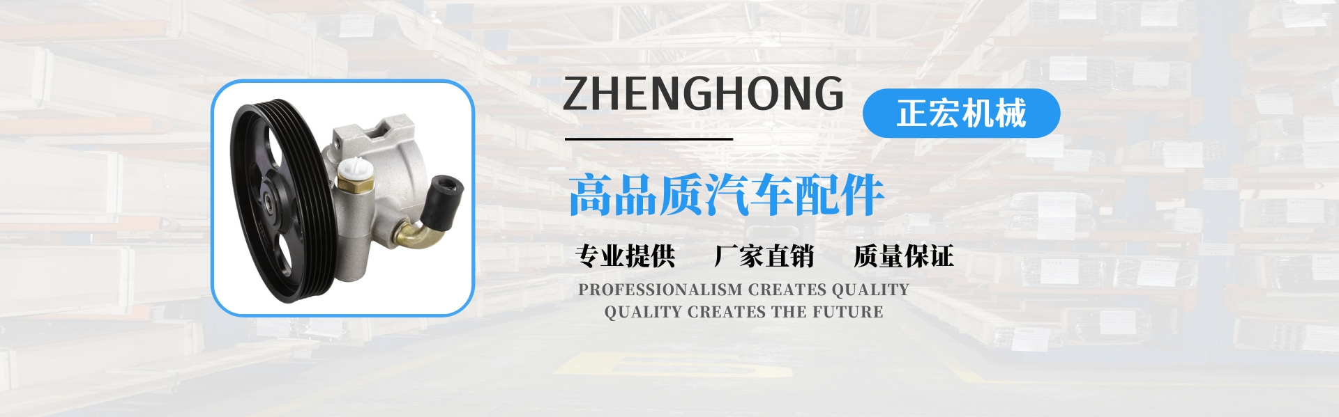 正宏機械有限公司成立于2004年,是一家新興的技術型企業,專業生產動力轉向泵。我們是一家集設計、生產、貿易于一體的專業公司,同時享有進出口權。 公司自成立以來,堅持以技術為導向,以高起點為原點;把產品創新和質量管理放在首位。擁有國內先進的汽車動力轉向泵專業生產設備和檢測設備。憑借經驗豐富的技術團隊,我們已經設計了20多個系列,近數百個動力轉向泵。年產10萬臺。產品深受廣大客戶的信賴和好評,得到了廣大客戶的認可。